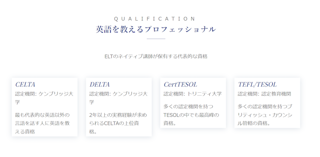 資格取得者が在籍しているオンライン英会話としては、ELT英会話やEF English Live、Camblyなどが挙げられます。
