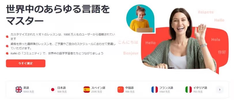世界130ヵ国以上の国籍の講師が在籍しており、中にはアメリカ・イギリスなどのネイティブスピーカーの講師が多数在籍しており、ネイティブ講師から学びたい方におすすめです。
