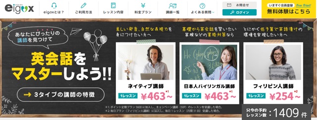 エイゴックスなどはポイント制を採用しており、月額2,700円から月2回ほどネイティブ講師とレッスンができます。