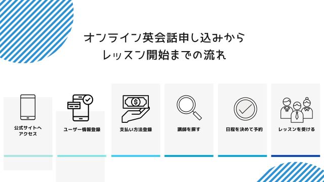 ここでは、オンライン英会話申し込みからレッスン開始までの流れを説明します。