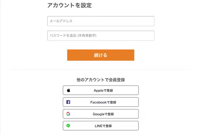 オンライン英会話に登録する情報を、メールアドレスにするか他のアカウント情報にするか選択してください。