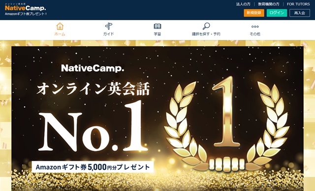 ネイティブキャンプはユーザー数260万人を誇る、利用者数No.1のオンライン英会話です。