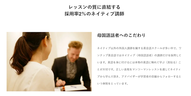 また非ネイティブ講師の場合は第二言語として英語を習得する苦労にも理解があるため、日本人が苦手とする部分・躓きやすい部分をジュ屈しているのがメリットです。