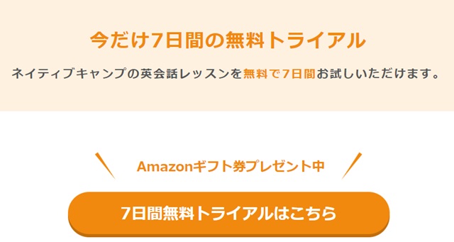 ネイティブキャンプなら、「7日間無料トライアルはこちら」をクリックしましょう。