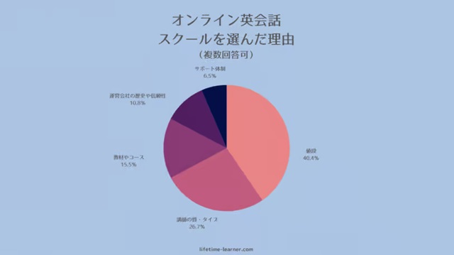つまり、レッスン料金の安さも英語学習を継続するためには大切ですが、何よりも自分の目的は何なのかを考えてスクールを選ぶことが重要です。