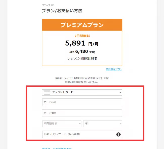 アカウント登録が済んだら、無料トライアル期間終了後のお支払い方法を選択します。