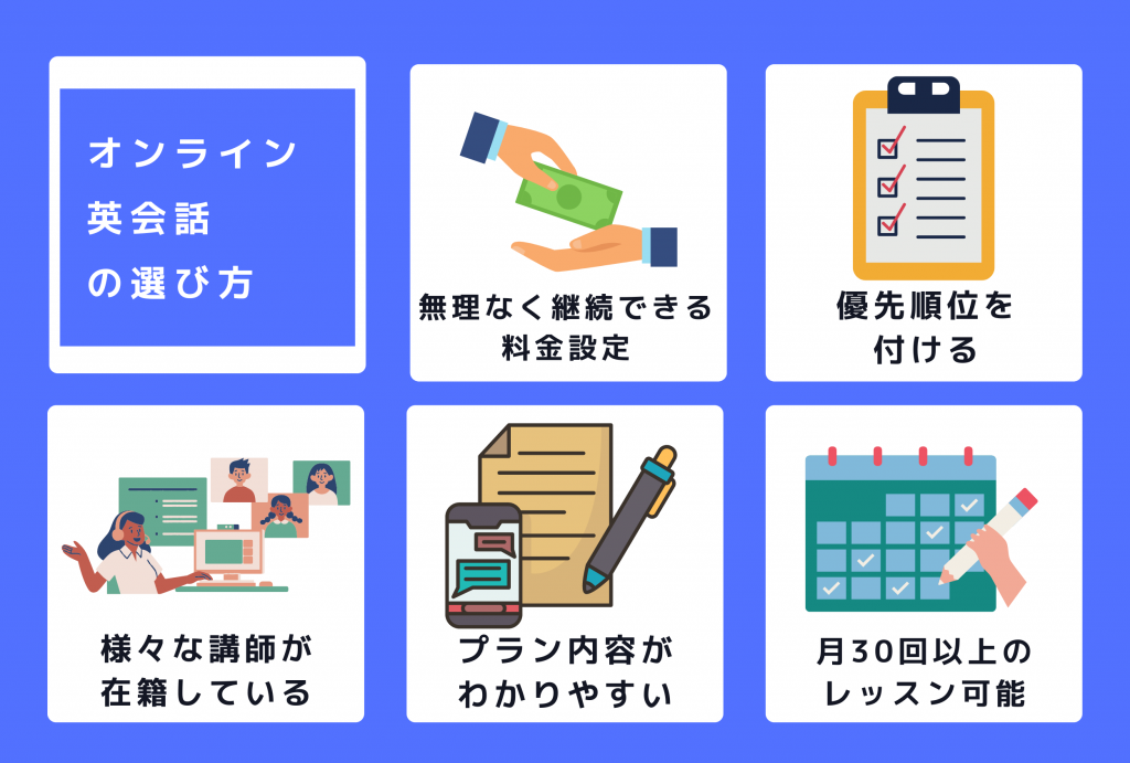 オンライン英会話スクールを選ぶ際には、価格の安さ以外にも優先順位をつけましょう。