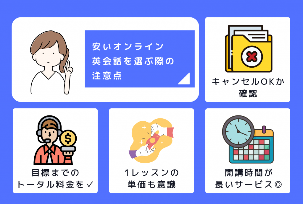 - 安いオンライン英会話スクールを選ぶ際の注意点